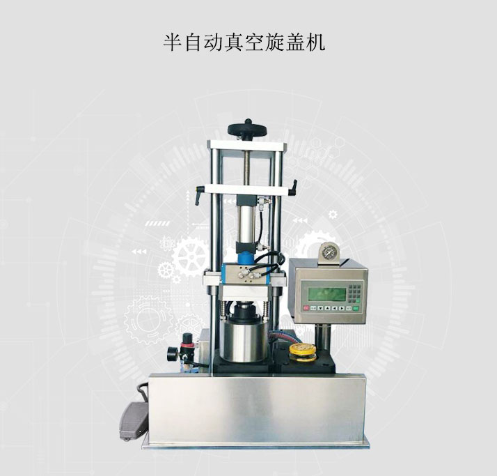 旋蓋機(jī)雖然屬于半自動(dòng)旋蓋機(jī)類(lèi)型,但是其工作效率并不低。工作模式采用人工出瓶、人工配蓋,對(duì)于物料瓶本身具有保護(hù)作用,能使物料瓶的耗損率降到低。半自動(dòng)真空旋蓋機(jī)