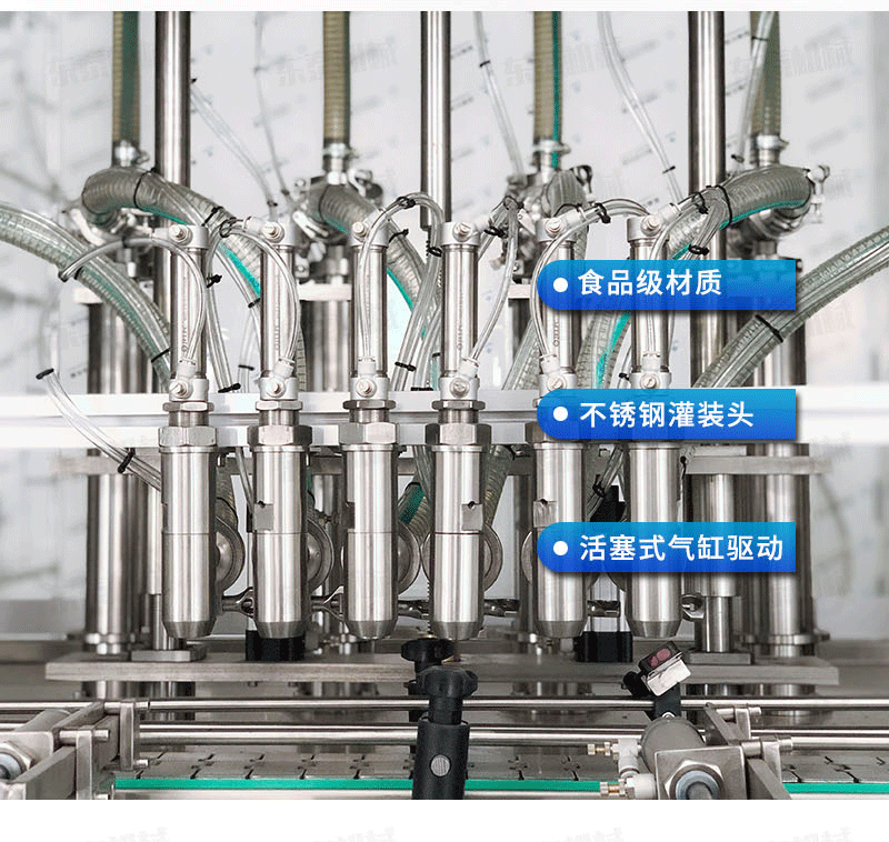 H、該機有6 個灌裝頭,由6個氣缸驅動、灌裝物料更加快速。