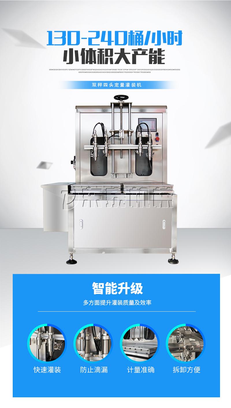 該灌裝機適用于各種油類以及粘稠液體的灌裝。如:潤滑油、防凍液、化工原料等