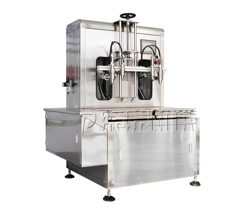 灌裝頭防滴漏設計,杜絕滴漏:整體工藝制作,灌裝頭內塞與灌裝頭緊密貼合,內塞底孔搭配真空回吸裝置,抑制物料滴漏污染生產環(huán)境和避免對液體物料的浪費。